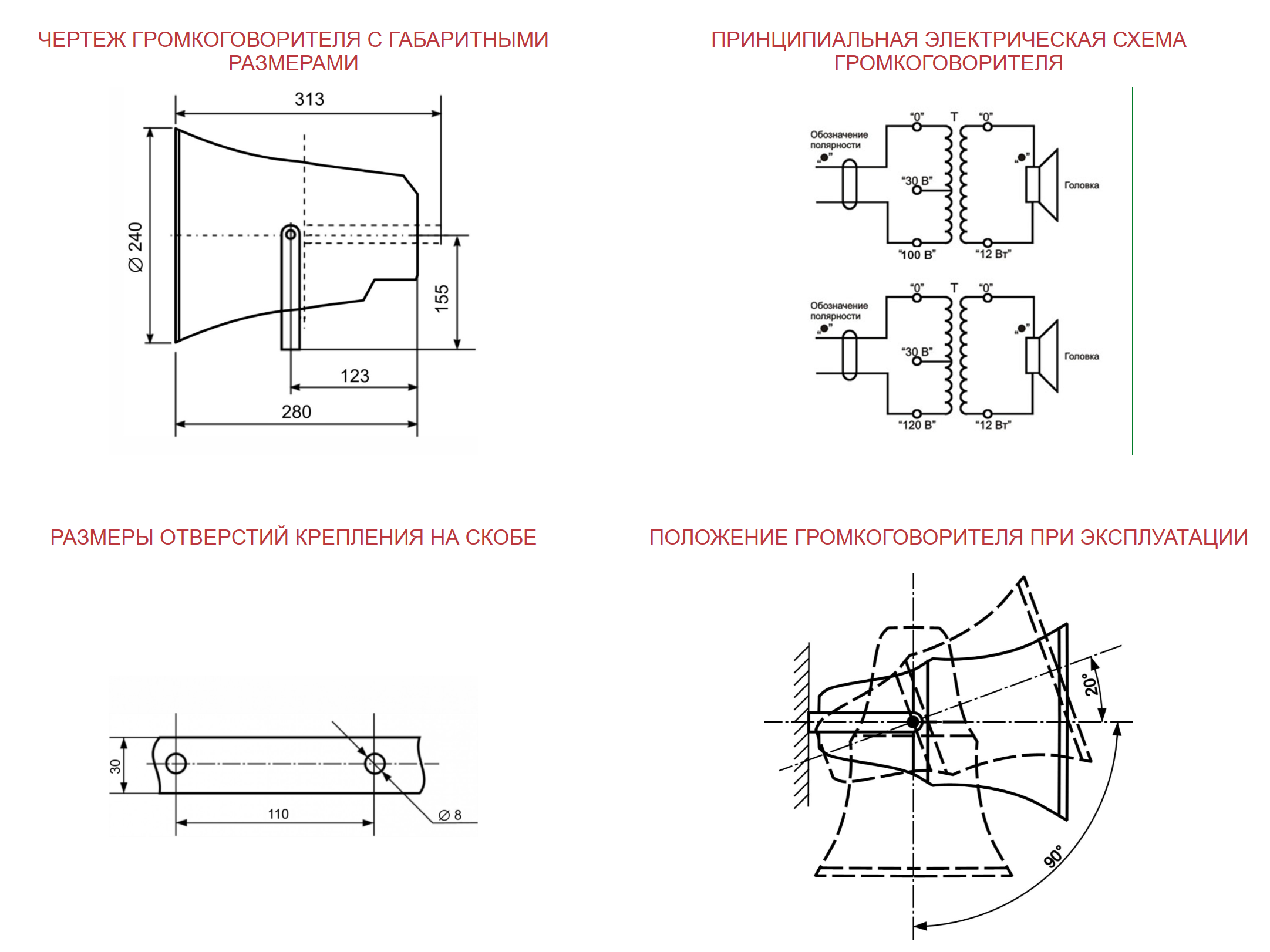 Принцип работы громкоговорителя заключается в преобразовании электрической энергии в акустическую, что позволяет эффективно передавать звуковые сигналы в окружающее пространство. Громкоговоритель предназначен для подключения к сети проводного вещания с номинальным напряжением 100В/120В. При необходимости подключения к сети с напряжением 30 В, требуется внести изменения в подключение трансформатора.