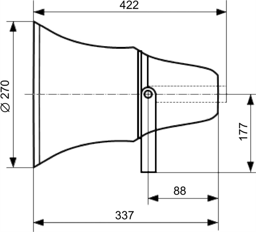 Используется для выдачи голосового сигнала, воспроизводит звук в широком спектре частот (315 - 5100 Гц), а созданное им звуковое давление (102 дБ) в совокупности с конфигурацией рупора позволяет получить громкую и разборчивую речь на значительном расстоянии до источника сигнала. Мощность громкоговорителя 10Вт. Подключается к напряжению транслирующей линии 30В, 70В или 100В.