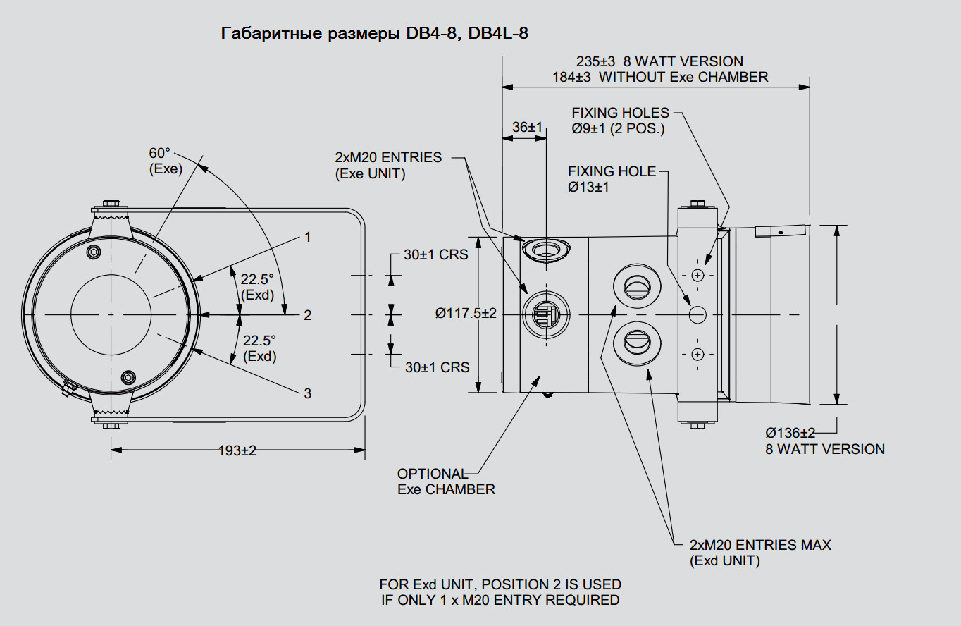 Имеется возможность применять различного рода кабельных вводов, в зависимости от типа подключаемого кабеля, исходя из таких размеров 1 x M20 Exd, 2 x M20 Exd/Exde, 2 x 1/2” NPT.