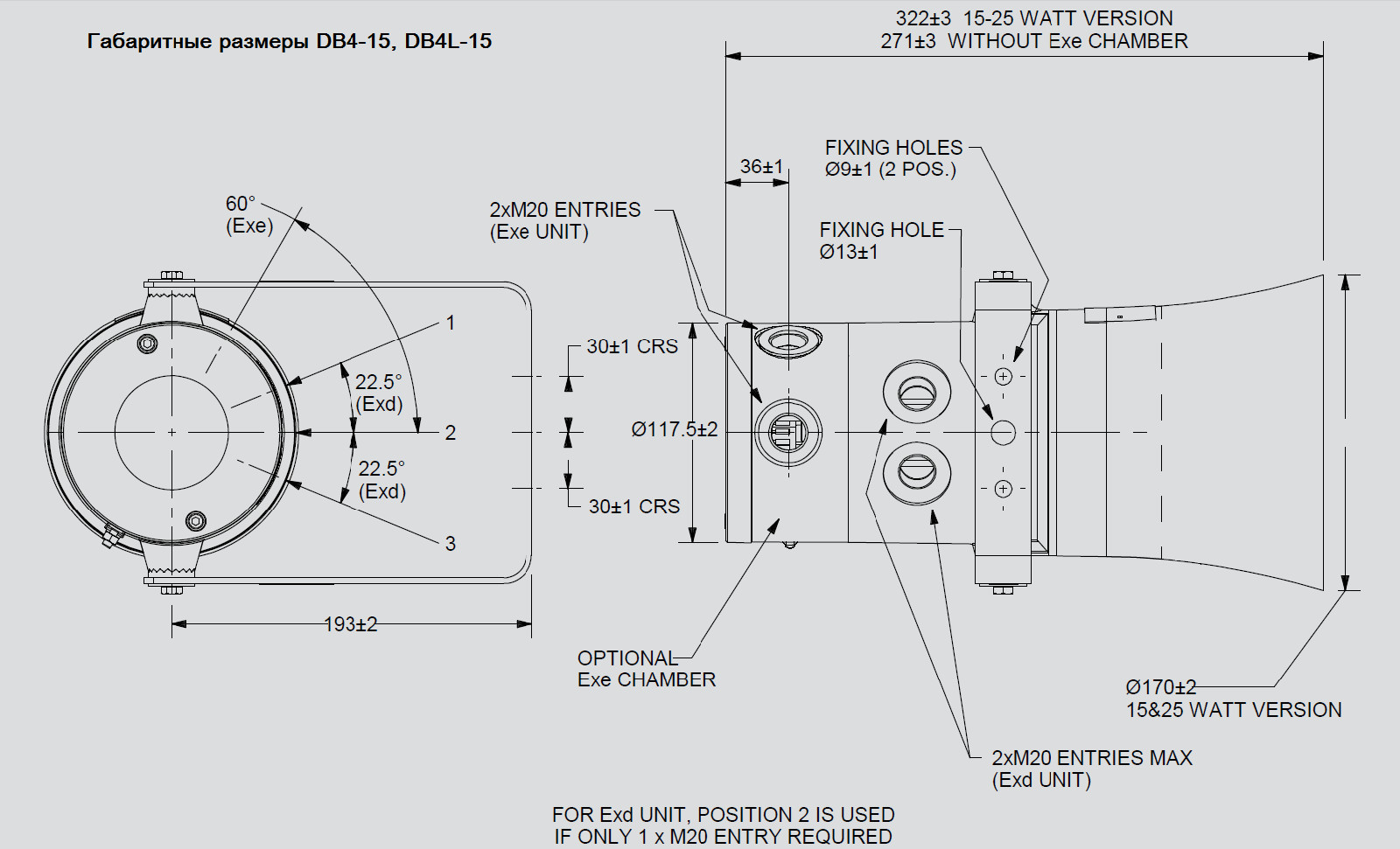 Имеется возможность применять различного рода кабельных вводов, в зависимости от типа подключаемого кабеля, исходя из таких размеров 1 x M20 Exd, 2 x M20 Exd/Exde, 2 x 1/2” NPT.