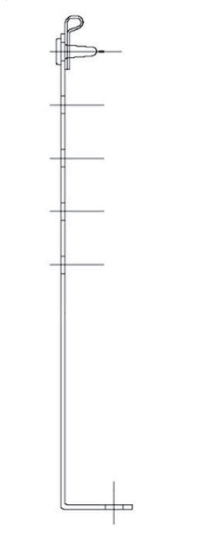 L-образный держатель, на конце которого зажим WAW или кнопочная защёлка имеет пять отверстий для регулирования расстояния смещения.
