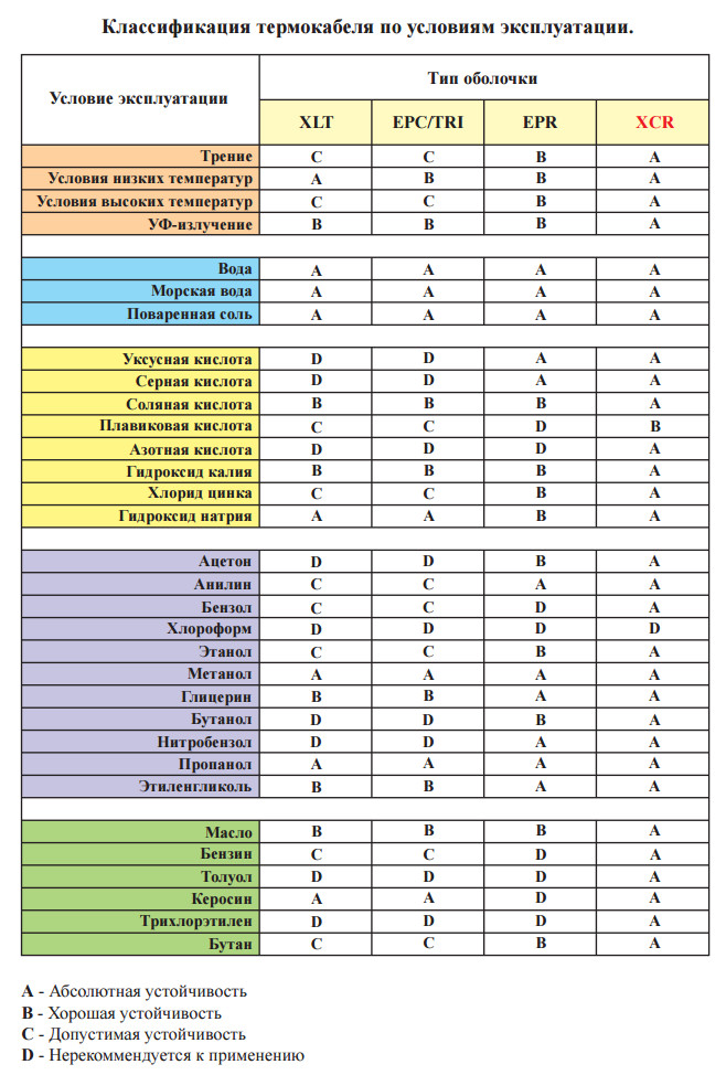 Термокабель типа EPR имеет полипропиленовую внешнюю оболочку значительно увеличивает огнестойкость и не распространяет влияния ультрафиолетового излучения окружающей среды. Как правило используется в средах с агрессивными химическими веществами, не подвержен истиранию. При этом надёжно функционирует в условиях повышенных температур окружающей среды.