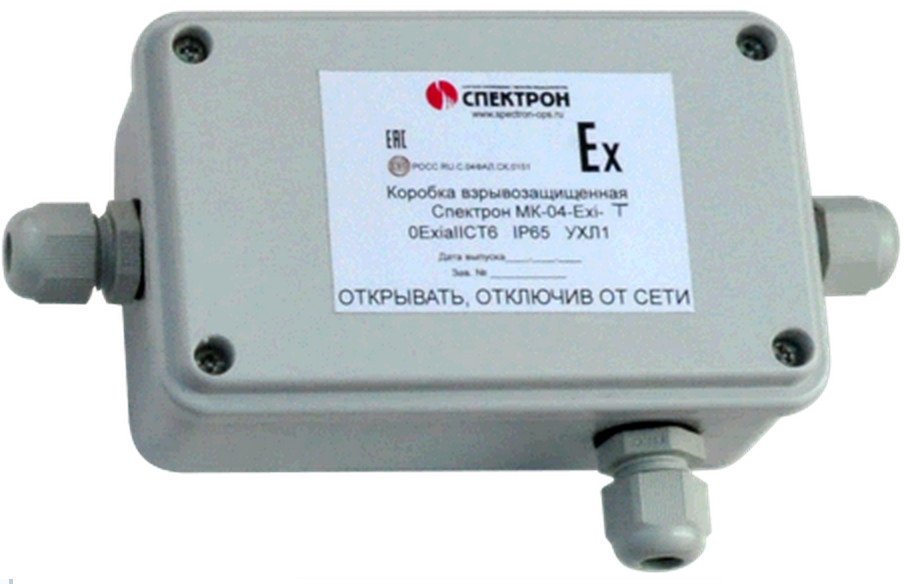 Взрывозащищенная коробка коммутационная Спектрон-МК-04-Exi-Т-тройниковая предназначена для построения электрических цепей многопрофильного назначения. Корпус выполнен из полиамида ПА66 со степенью защиты внутреннего объема IP65 и соответствует маркировке взрывозащиты 0ExiaIICT6 Х, что позволяет рекомендовать данное изделие к эксплуатации на различного рода взрывоопасных, химических производствах, добывающих, перерабатывающих предприятиях, зонах морских портов, морских платформах.