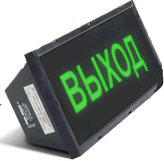 Взрывозащищённый оповещатель - табло СКОПА-З предназначен для светового информирования персонала по средствам визуального отображения на табло информации в связи с изменением ситуации на охраняемом объекте. Информация отображаемая на табло кроме стандартных: ПОЖАР, ГАЗ УХОДИ, НАПРАВЛЕНИЕ ЭВАКУАЦИОННОГО ВХОДА, АЭРОЗОЛЬ НЕ ВХОДИ, НАПРАВЛЕНИЕ ЭВАКУАЦИИ и прочее, может нести любую другую информацию по заказу заказчика. При этом цветовое исполнение информации отображаемом на табло может быть трех цветов красного, жёлтого, зеленого. Интенсивность светового излучения не зависит от напряжения питаемого табло и составляет-не менее 900 мКд, изменение цвета происходит путем преслонения магнита (входит в комплект) к месту на корпусе обозначенному жёлтым кругом, прибор при этом должен быть включен, после выключения и последующего включения цвет будет запомнен.