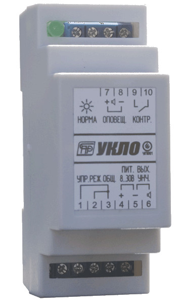 Устройство контроля линии оповещения УКЛО предназначен для контроля работоспособности (целостности) одной линии оповещения в охранно-пожарной системе развернутой на объекте. Используется прибор в системах оповещения с нормально выключенными сиренами табло рупорами и пр. Контроль цепи на обрыв и замыкание осуществляется как от УКЛО до пульта управления так и от УКЛО до прибора оповещения, при этом устройство оборудовано световой индикацией целостности подконтрольной цепи.