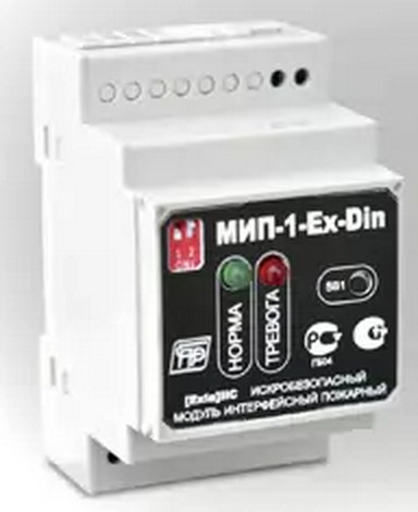 Модуль интерфейсный пожарный взрывозащищенный МИП-1-Ex-Din применяется в системе пожарной сигнализации развернутой на объекте. Применяется в качестве извещателя термокабеля ИП104 "Гранат-термокабель" производства ООО Спецприбор или аналогов.