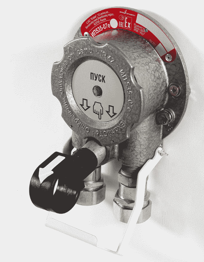 Взрывозащищённое устройство дистанционного пуска (УДП) ИП535-07e-И-2 "ПУСК" применяется в системах охранно-пожарных сигнализаций в качестве ручного активатора различного рода исполнительных систем и устройств (пожаротушения, дымаудаления, тревожного оповещения, пуск автоматических технологических процессов).