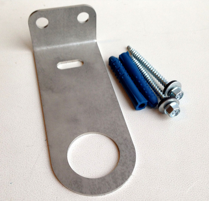 Представляет собой цельную законченную деталь из нержавеющей стали, в комплект входят 2 дюбеля и 2 самореза. Поставляется по заказу.