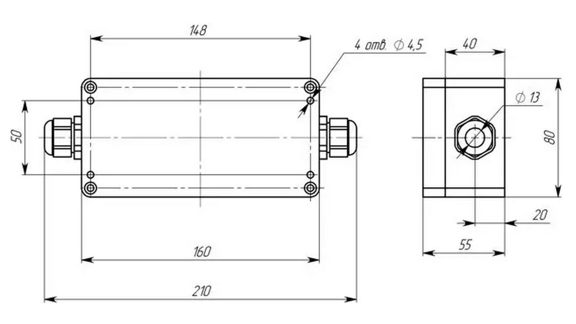 | Габаритные размеры гермитичного корпуса | 210х80х55 мм, |