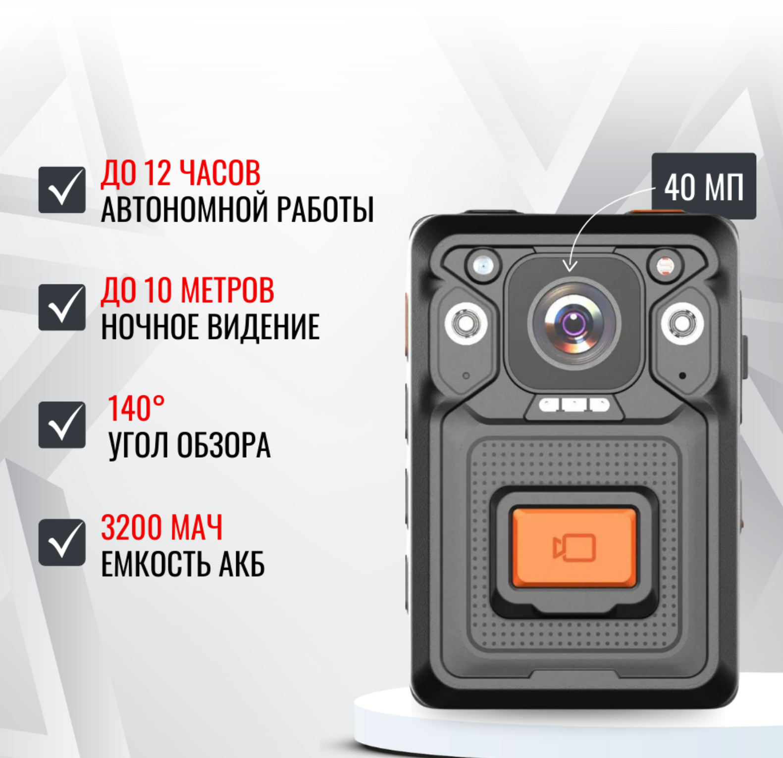 • Долгая автономная работа: Встроенная аккумуляторная батарея емкостью 3200 мАч обеспечивает до 12 часов непрерывной записи.