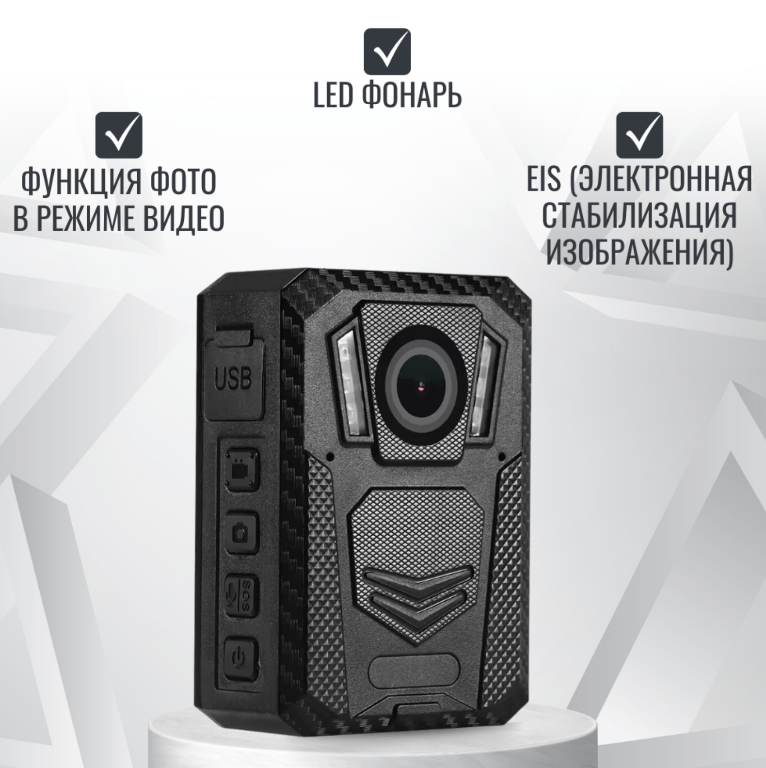 • Интеллектуальные функции: Встроенные GPS/Глонасс, G-сенсор, датчик движения и электронная стабилизация изображения (EIS) для повышения качества записи.
