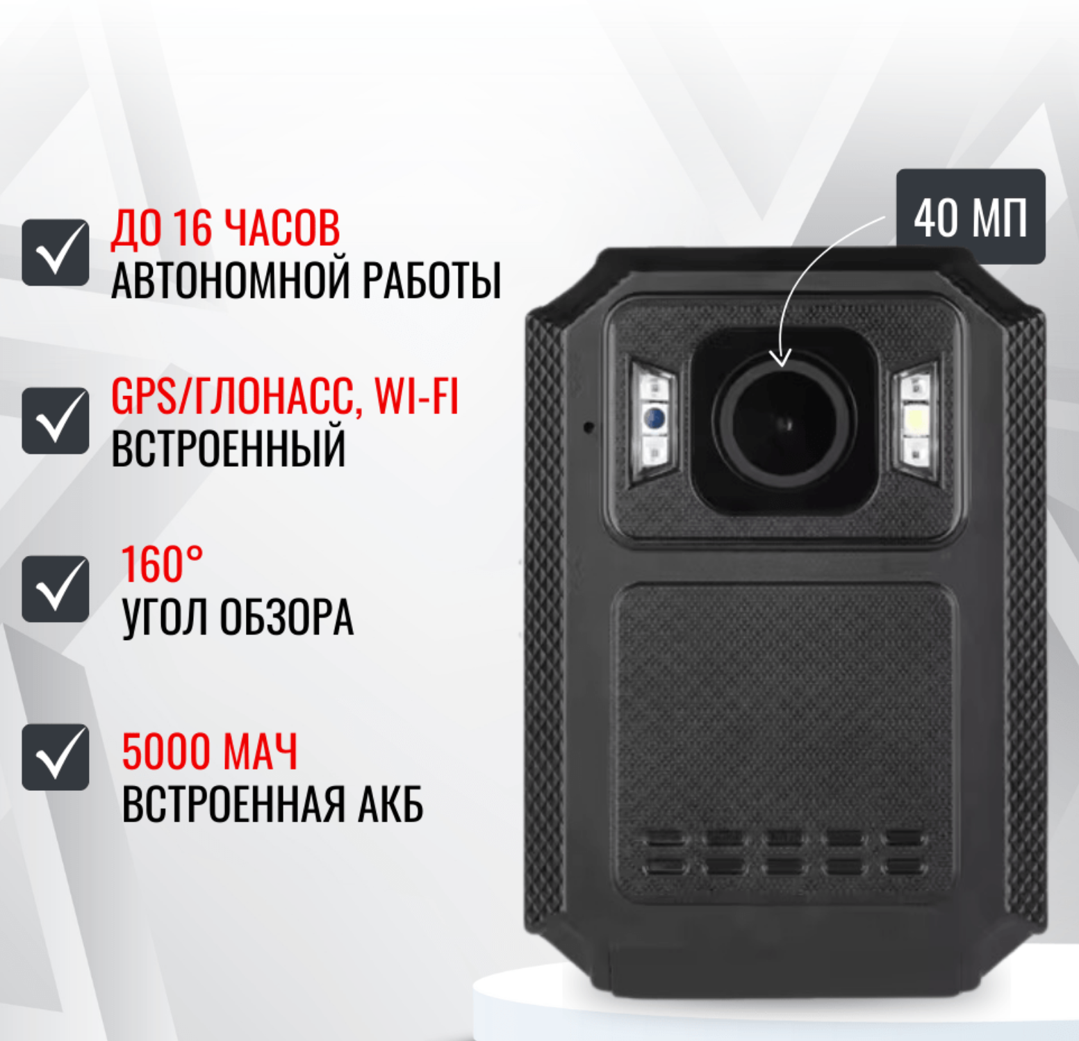 • Накопитель: 32 Гб (до 18 часов видеозаписей)