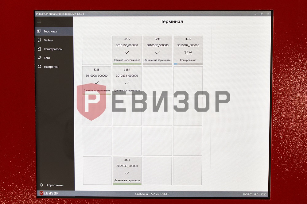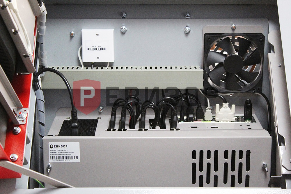 Терминал РЕВИЗОР Т28 HDD выполнен из металла. Слоты для регистраторов находятся за защитной дверкой с замком и оснащены надежными фиксаторами, гарантированно удерживающими устройства внутри. Активное охлаждение вентилятором, питание терминала от сети 220В через адаптер в комплекте. Защита каждого выхода от короткого замыкания и перегрузок. Габаритные размеры 540х390х1400 мм, вес 70 кг. Напольный монтаж в помещении.