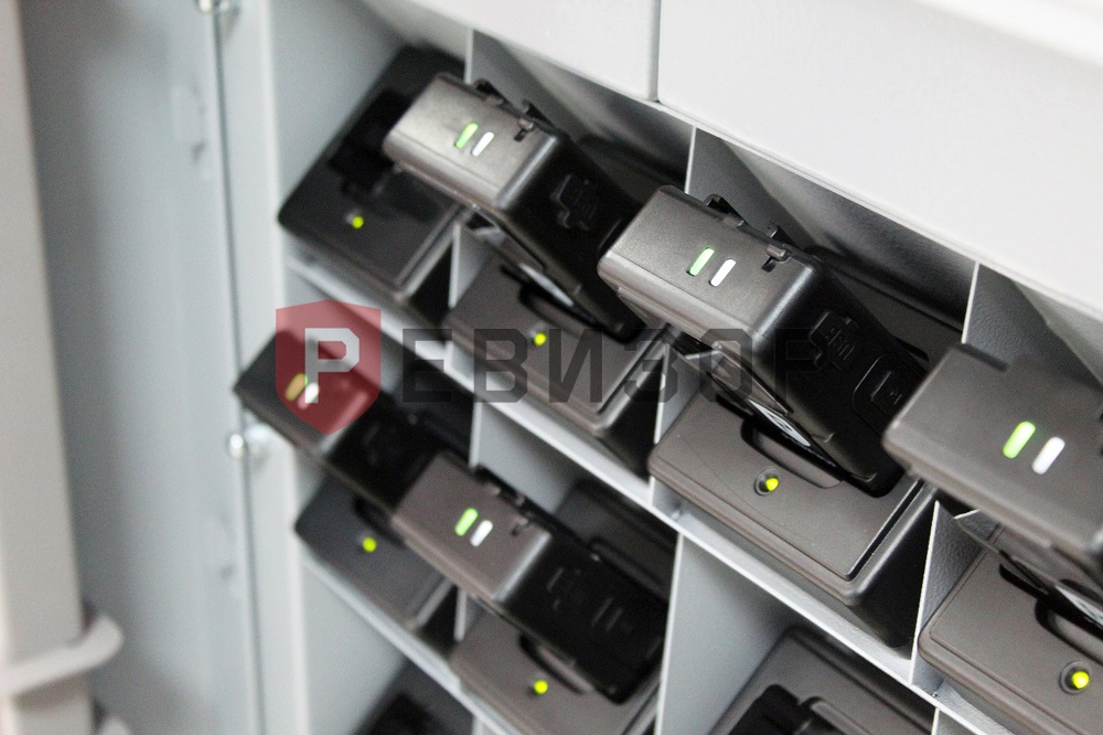 Терминал РЕВИЗОР Т28 HDD используется для проведения одновременного заряда двадцати восьми (28) персональных носимых видеорегистраторов РЕВИЗОР. Помимо функции заряда АКБ указанных устройств, станция собирает с них данные и хранит их либо в собственной памяти, либо на ПК / любом ином внешнем носителе. Стационарная установка в помещении, автоматическая работа.