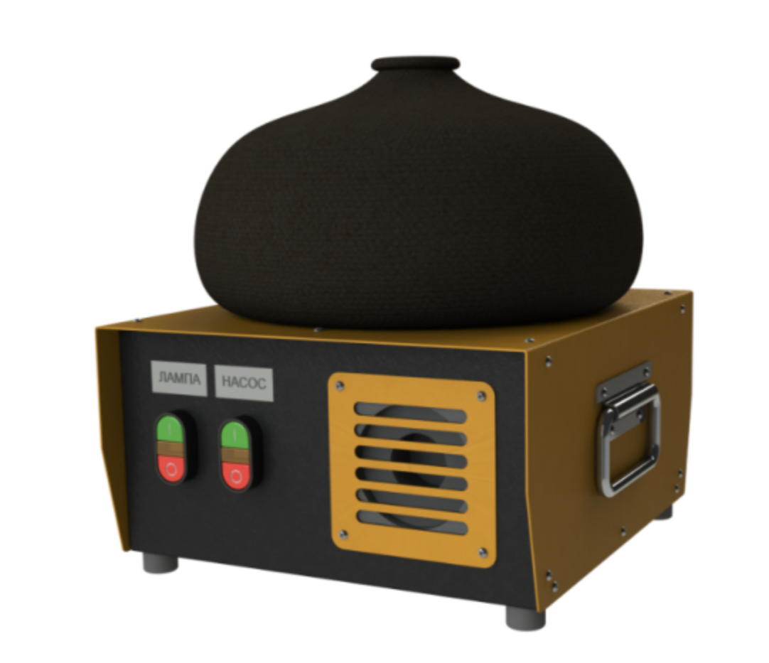 Внутри светорассеивающего купола установлен каркас со светодиодной лампой, а в основании корпуса размещены воздухонагнетающий агрегат (компрессор) и электрическая схема с панелью управления.