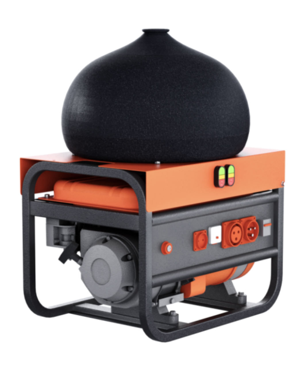 Основание установки — электрогенератор, закрытый защитным кожухом, предохраняющим оборудование от попадания влаги и пыли. Внутри корпуса расположен воздухонагнетающий агрегат (компрессор) и панель управления с кнопочным постом.