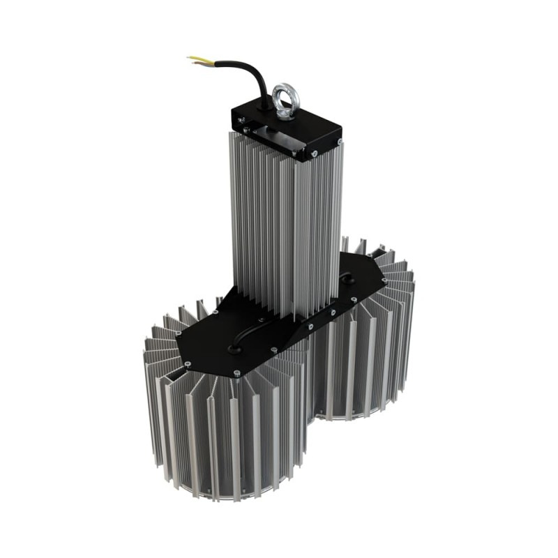 Экструдированный корпус изготовлен из анодированного алюминия, габаритные размеры 362×180×438 мм. Отлично рассеивает тепло выделяющееся при работе светодиодов. Электропитание от сети AC 176-264V 50Hz ± 10% через внешний металлический адаптер заполненный теплопроводным составом. Монтаж подвесной на рым-болт (опционально возможно крепление на кронштейн).