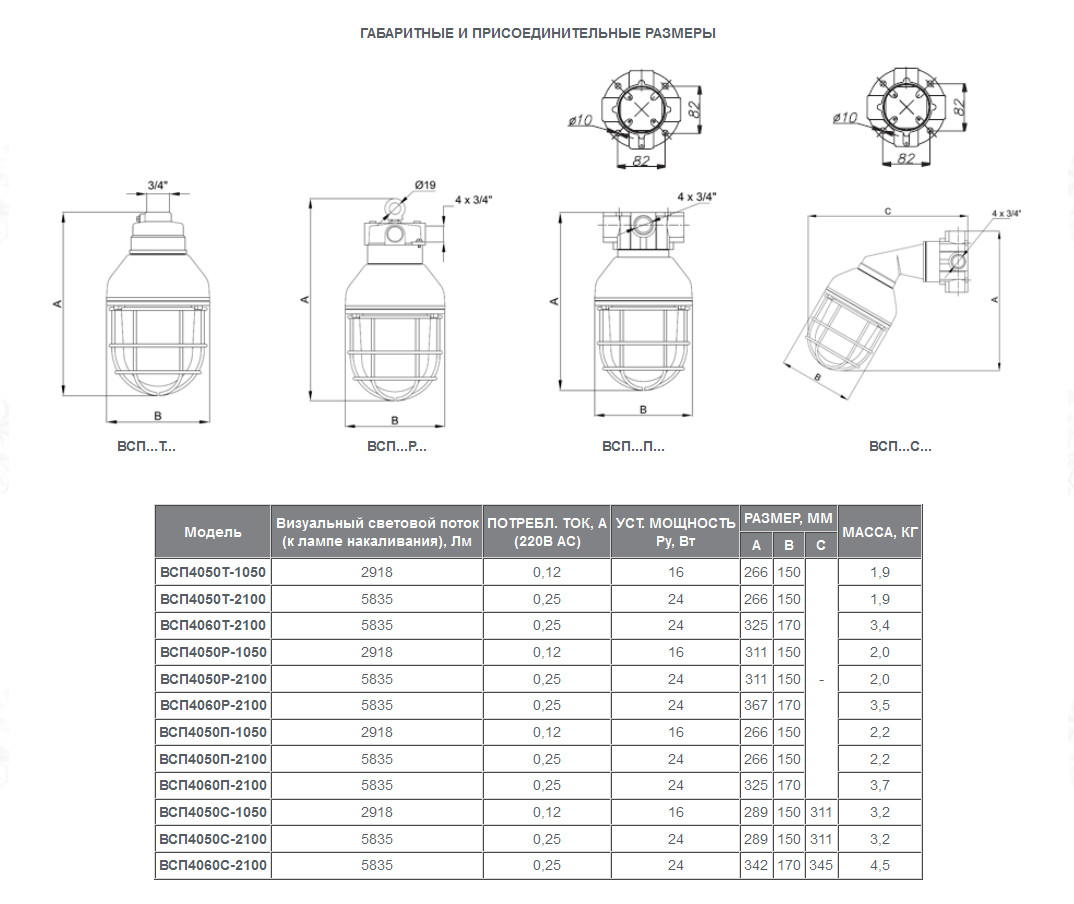 В светильниках типа ВСП допускается замена лампы со светодиодной матрицей на энергосберегающую, галогенную и лампу накаливания исходя их таких характеристик.