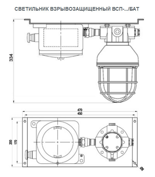 изготовлен для подвесного монтажа (на крюк, трос) имеет рым-болт, с распределительной коробкой;