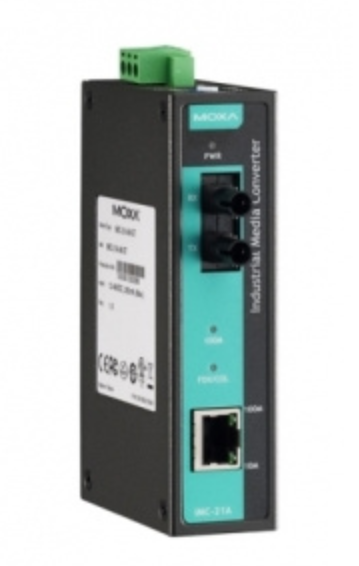 MOXA IMC-21A-M-ST — промышленный медиаконвертер, предназначенный для преобразования Ethernet-сигналов между медными и оптическими линиями связи. Он обеспечивает надёжную передачу данных по многомодовому волокну на расстояние до 5 км, что делает его оптимальным решением для промышленных, транспортных и инфраструктурных сетей.