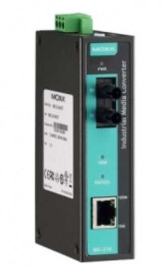 MOXA IMC-21A-M-ST-T — промышленный медиаконвертер, предназначенный для преобразования сигналов Ethernet между медными и оптическими линиями связи. Устройство обеспечивает надёжную передачу данных на расстояние до 5 км и поддерживает скорость до 100 Мбит/с, что делает его оптимальным решением для систем автоматизации, мониторинга и промышленной связи.