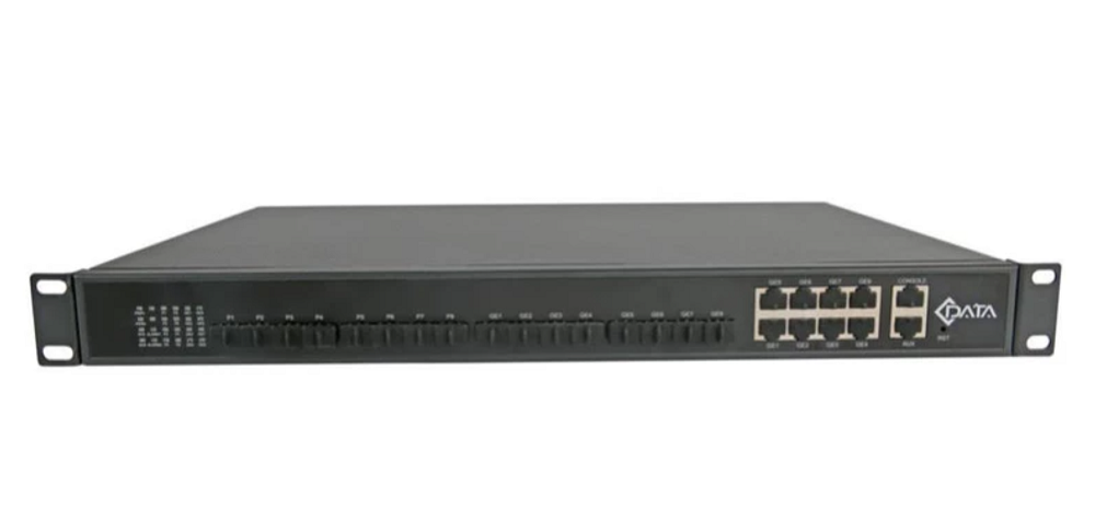 Рэковый металлический корпус, габаритные размеры 440х44х280 мм (1U), вес 4.5 кг. Питание от сети 220В. Совместим с сетевым оборудованием BDCOM, ZTE, Huawei.
