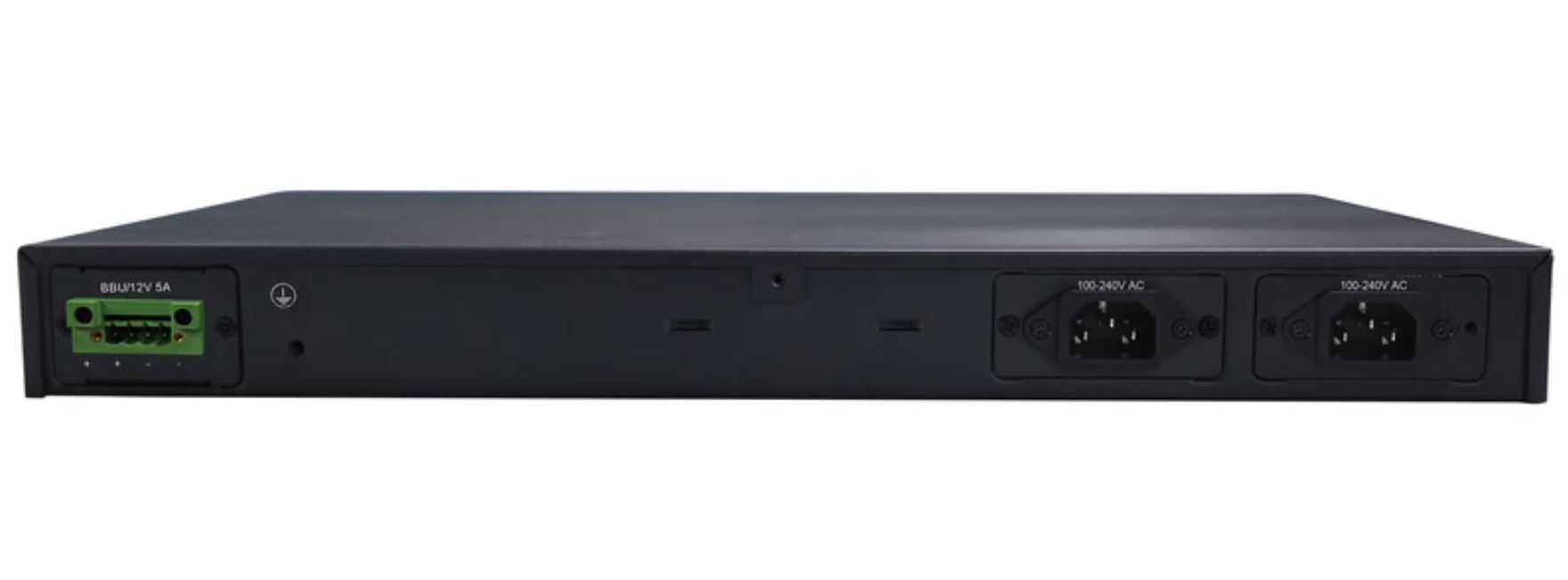 Рэковый металлический корпус, габаритные размеры 440х44х230 мм (1U), вес 4 кг. Питание от сети 220В (2 разъема) с резервированием от внешнего локального источника постоянного тока DC 48В. Совместим с сетевым оборудованием BDCOM, ZTE, Huawei.
