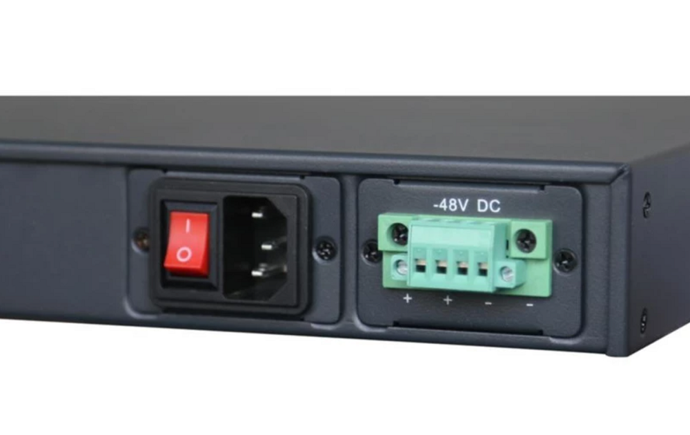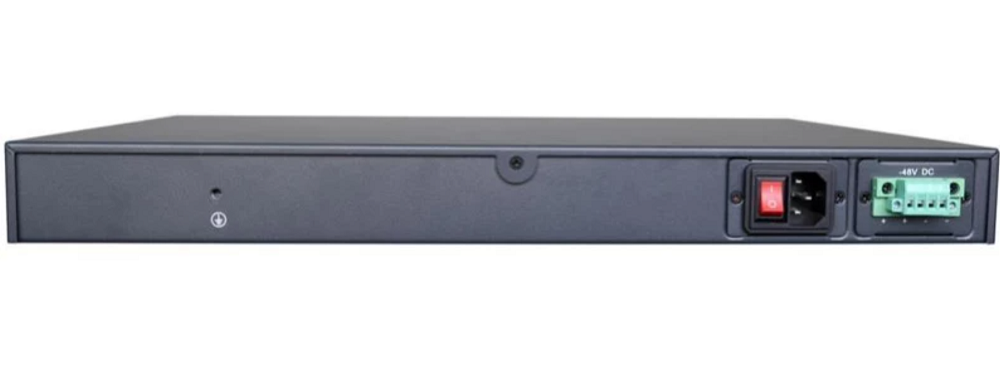 Рэковый металлический корпус, габаритные размеры 440х44х350 мм (1U), вес 4.5 кг. Питание от сети 220В. Совместим с сетевым оборудованием BDCOM, ZTE, Huawei.
