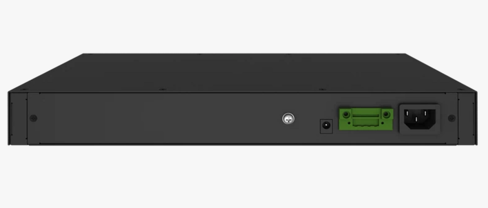 Рэковый/настольный металлический корпус, габаритные размеры 360х44х193 мм (1U), вес 1.7 кг. Питание от сети 220В с резервированием от внешнего локального источника постоянного тока DC 48В.