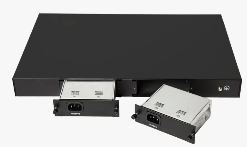 Рэковый металлический корпус, 1U. Питание от сети 220В, два съемных блока питания. Совместим с сетевым оборудованием BDCOM, ZTE, Huawei.