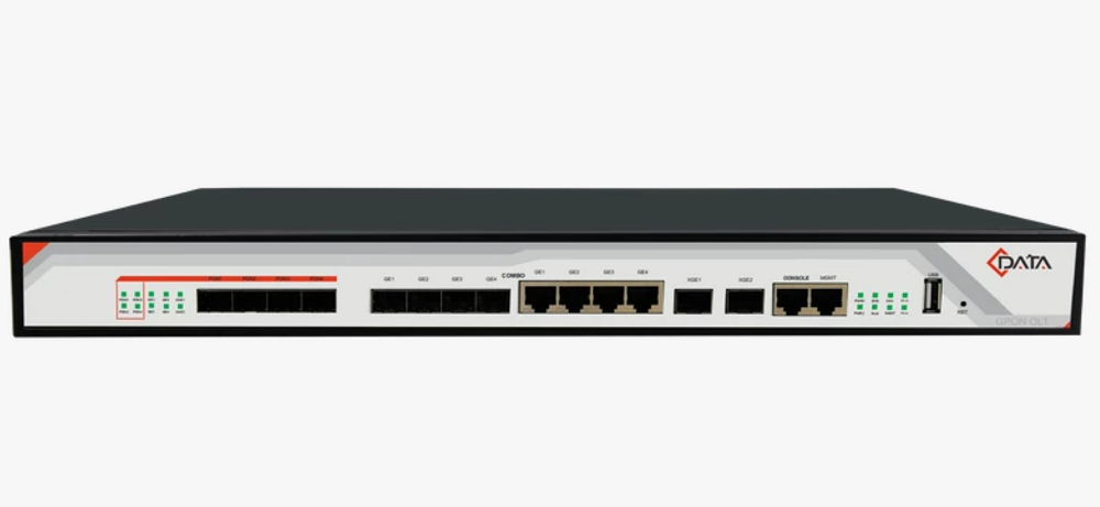 Оснащение включает в себя четыре PON порта со скоростью 1,25/2,5 Гбит/сек (восходящее/нисходящее направление), коннекторы 4х SFP; четыре аплинк комбо порта SFP (4х SFP, 1,25 Гбит/сек) / 4х RJ-45 со скоростью 10/100/1000 Мбит/сек; два аплинк/даунлинк порта SFP со скоростью 10 Гбит/сек (2х SFP+). PON порты с коэффициентом деления 1:128, подключение до 512 ONU. Управление локальное, через протоколы Telnet/CLI, порт Console (1х RJ-45, 100 Мбит/сек) или удаленное через системы SNMP и Web 3.0, порт Management (1х RJ-45, 100 Мбит/сек).