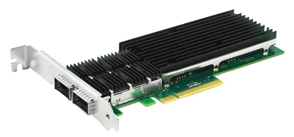 Оснащение. Блок управления (контроллер) сетевой карты - Intel XL710. Два оптических SFP-порта, форм-факторы QSFP+, скорость каждого порта 40 Гбит/сек. Используется современный интерфейс PCI Express v3.0 x8 (повышенная производительность графики и вычислений), но также предусмотрена обратная совместимость с более ранними версиями интерфейсов PCI Express v2.1 и PCI Express v2.0.