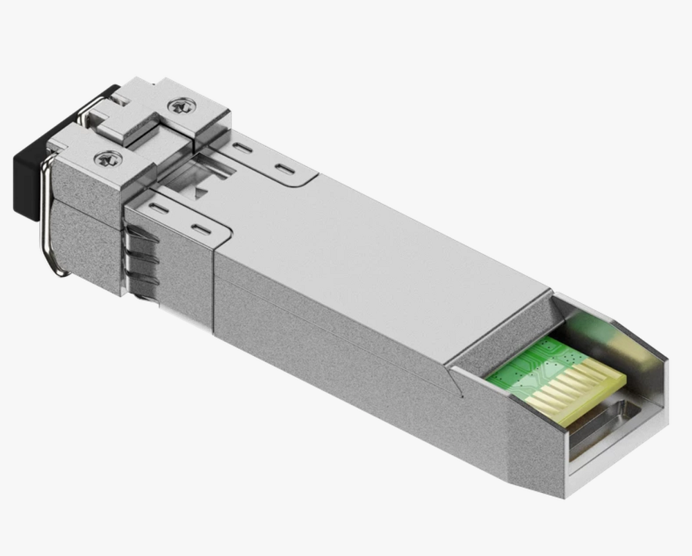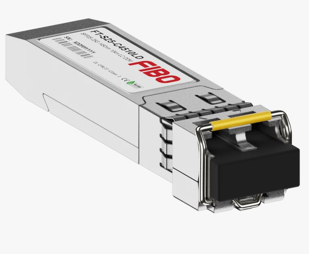Скорость передачи данных составляет 25 Гбит/сек по одномодовому оптоволокну. Работает под управлением сетевого коммутатора, максимальное расстояние передачи данных 10 000 метров. Мощность излучения от -3 до +1 дБм.