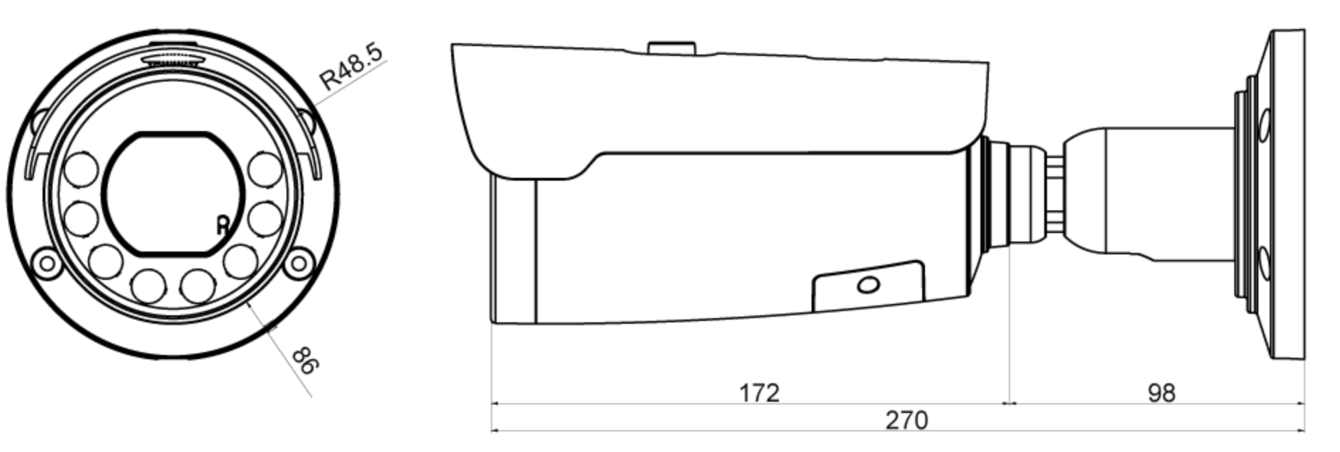 • Класс защиты: IP66, что гарантирует защиту от пыли и сильных водяных струй, позволяя использовать камеру на улице в любых погодных условиях.