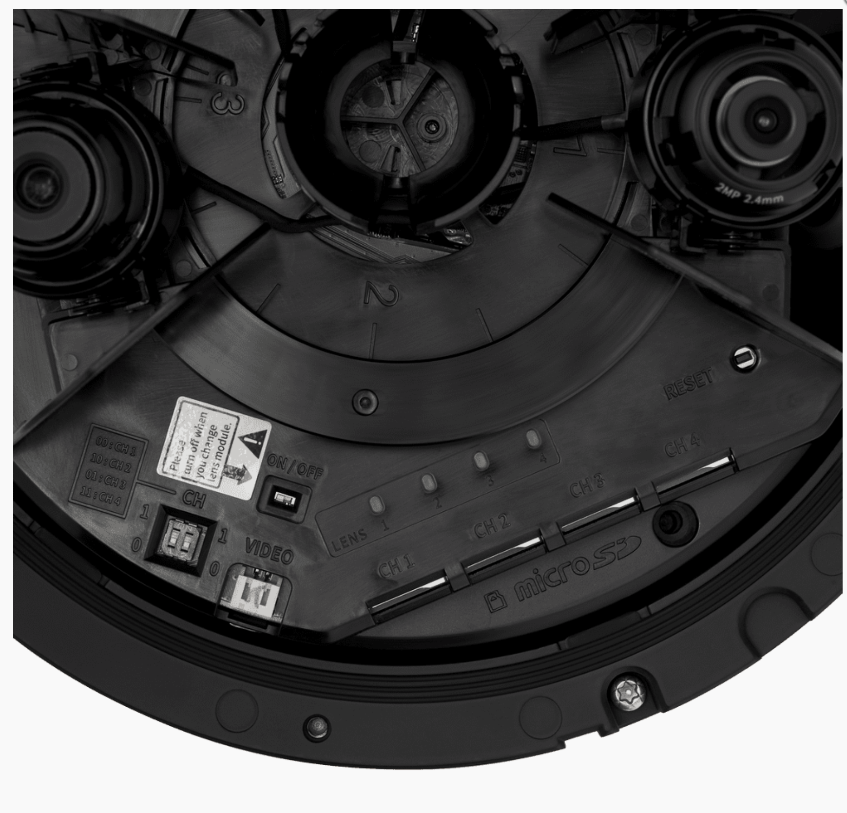 • Модули: Возможность установки до четырех сменных видеомодулей с фиксированным объективом: