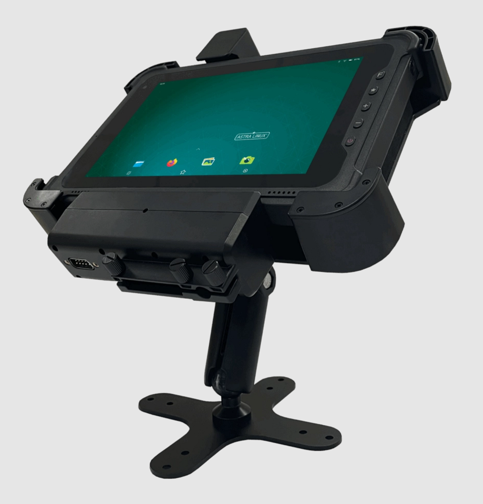 Mobile Inform Group БК MIG T10 x86 — это мощный планшет MIG T10 x86 объединенный в единый бортовой компьютер (БК) со специализированным кредлом (или док-станцией) с целью надежного крепления и питания планшета в транспорте. Благодаря системе креплений с использованием зажимов и замков для каждого разъема, устройство надежно и легко монтируется внутрь складской транспортной техники (или иных ТС); богатое оснащение кредла различного рода разъемами существенно повышает функциональные возможности планшета за счет подключения периферийных устройств, принтера/сканера, промышленной клавиатуры/манипулятора "мышь" и т.д.