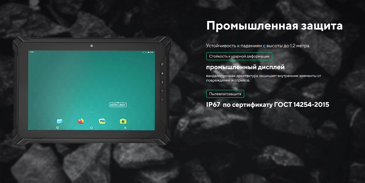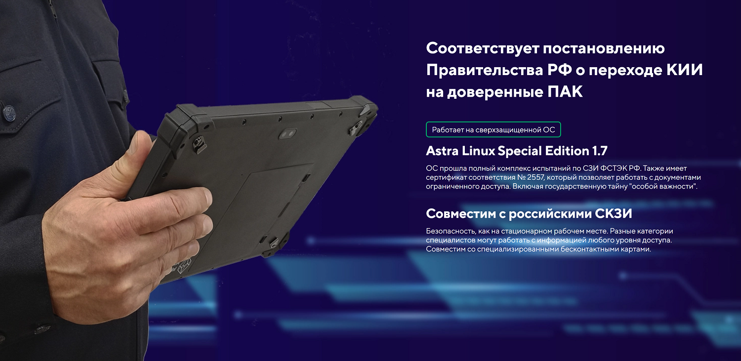 | Операционная система | Astra Linux Special Edition 1.7 (мобильная версия) или Windows 11 IoT Enterprise |