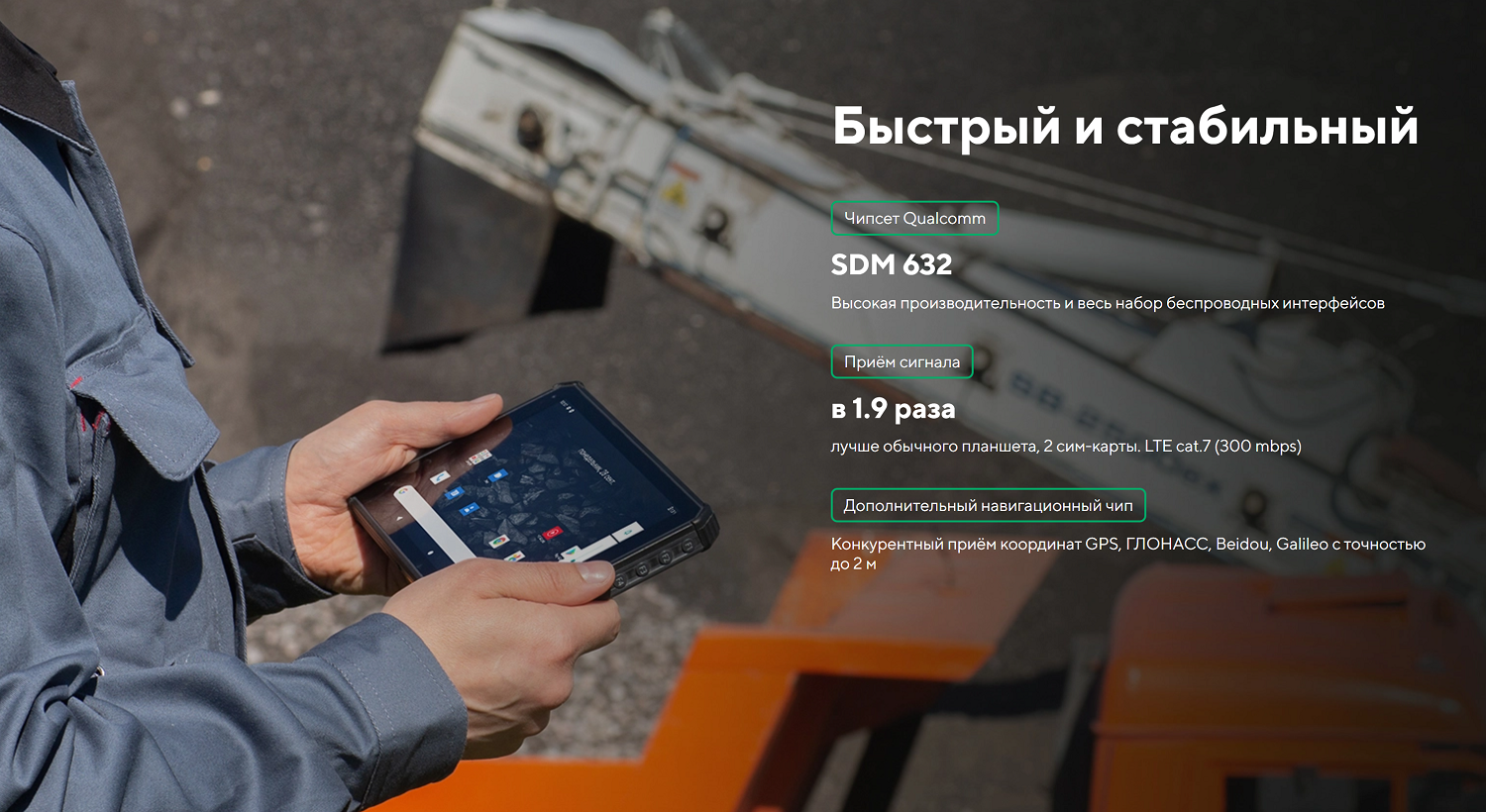 | Тип устройства связи | Промышленный 4G-планшет со встроенным считывателем UHF RFID |