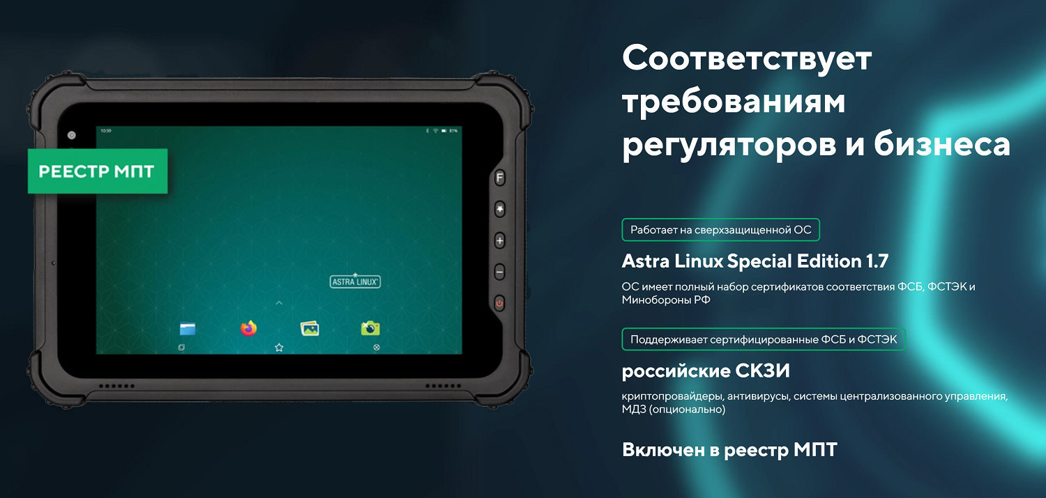 | Операционная система | Astra Linux Special Edition 1.7 (мобильная версия): релиз «Смоленск» |