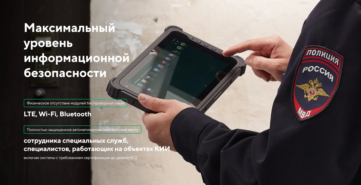 Mobile Inform Group MIG T8X x86 БС — это мощный планшет созданный для функциональной помощи в работе специалистов промышленных предприятий: мониторинг оборудования, оптимизация производства, управление приборами и технологическими процессами, и т.п. Подходит для работы в помещениях или на открытых (уличных) пространствах с повышенным уровнем опасности, тяжелыми климатическими условиями или же с наличием агрессивных сред. В данной модификации отсутствуют модули беспроводной связи (LTE, Wi-Fi, Bluetooth), что максимизирует информационную безопасность и дает возможность интегрировать устройство в работу инфраструктуры значимых объектов КИИ, в том числе системы с требованием сертификации уровня КС2.