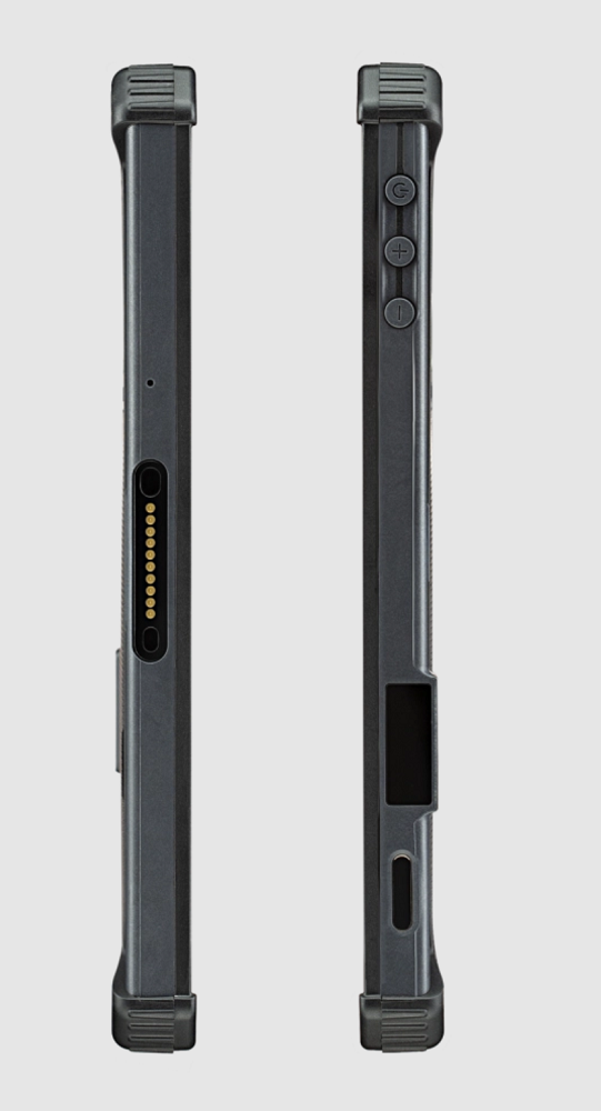 Корпус планшета ТСД MIG T8X имеет современный привлекательный дизайн и высокие уровни защиты. От влаги и пыли на уровне IP67 - водонепроницаемый, допускается прямое попадание осадков; от механических повреждений - дисплей и корпус не подвержены деформации при ударах, прибор прошел испытания на прочность при падении на бетон с высоты 1.2 метра согласно ГОСТ 28218-89; от вибрации - виброустойчивость к частотам 1 - 80 Гц по ГОСТ 16962-71. Компактные габаритные размеры 212x133x19 мм, легкий вес 520 г. Рабочие температуры от -20 до +60°C.