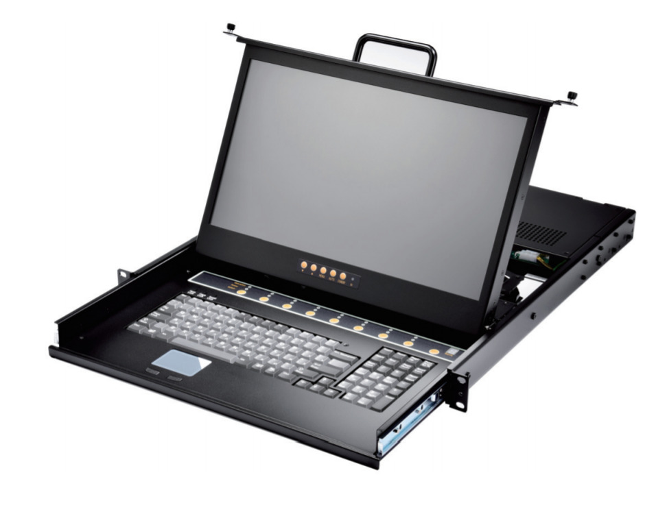 Промышленная KVM-консоль AMK508-17WCBRUD4 — это устройство эксплуатируемое в промышленных условиях с целью дистанционного управления компьютером отвечающим за какие-либо технологические процессы. Аббревиатура KVM (keyboard, video, mouse) означает что в составе прибора объединены как минимум три периферийных устройства: дисплей, клавиатуру и манипулятор, тачпад или подобный им. Поддерживает подключение до восьми (8) компьютеров.