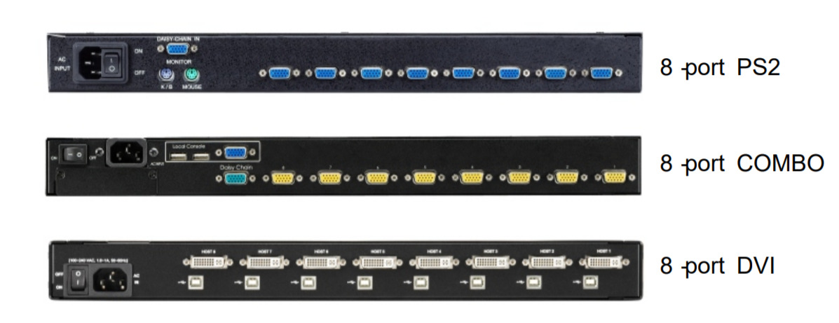 | - Входные KVM разъёмы | D-Sub 15 ( совмещённый: VGA + PS/2 + USB ) |
