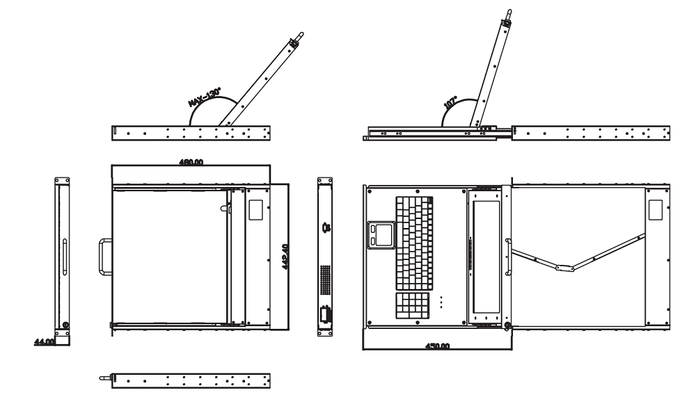 | Выдвижная рельсовая система | Single Rail (дисплей и клавиатура - цельный модуль) |