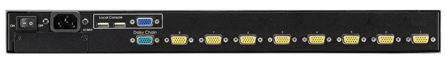 | - Разъёмы для каскадирования | Вход: D-Sub 15 (VGA) + PS/2 (Клавиатура) + PS/2 (Мышь) |