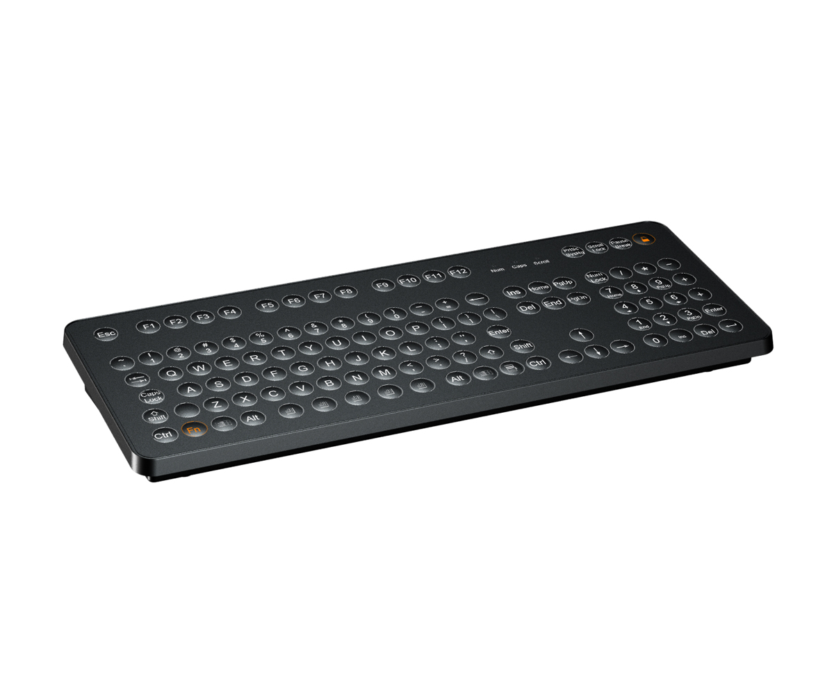 Клавиатура полностью выполнена из ABS-пластика и покрыта слоем износостойкого антимикробного полиэстера, устойчивого к царапинам, воздействию жидкостей и химических веществ. Рабочие температуры от -20 до +65°C. Габаритные размеры 401x151x22 мм, вес 1.4 кг, черный цвет. Монтаж настольный, включая положение "под углом", реализуемое за счет крепления типа VESA.