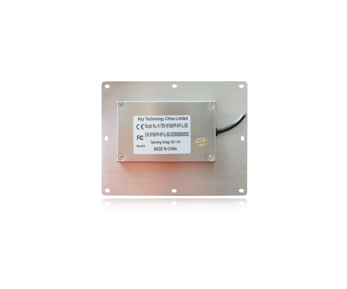 Key Technology K-TEK-M160HP-KP-IL-SS-USB — это надежная цифровая клавиатура с высокоточным указательным устройством (FSR pointing device), для эксплуатации в промышленных условиях. Степень защиты от влаги и пыли IP65 (динамический), рабочие температуры от -20 до +65°C
