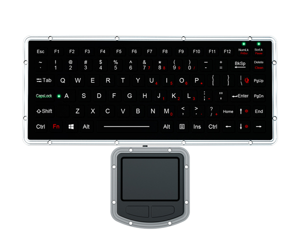 Key Technology K-TEK-M270-FN-BL-IT-NV-151B-DWP+M73TP-US/RU-USB — это надежная промышленная силиконовая клавиатура с герметичным выносным тачпадом, которая может использоваться в самых суровых условиях эксплуатации (рабочие температуры от -40 до +75°C). Предназначена для монтажа в панель, встраивается снизу.