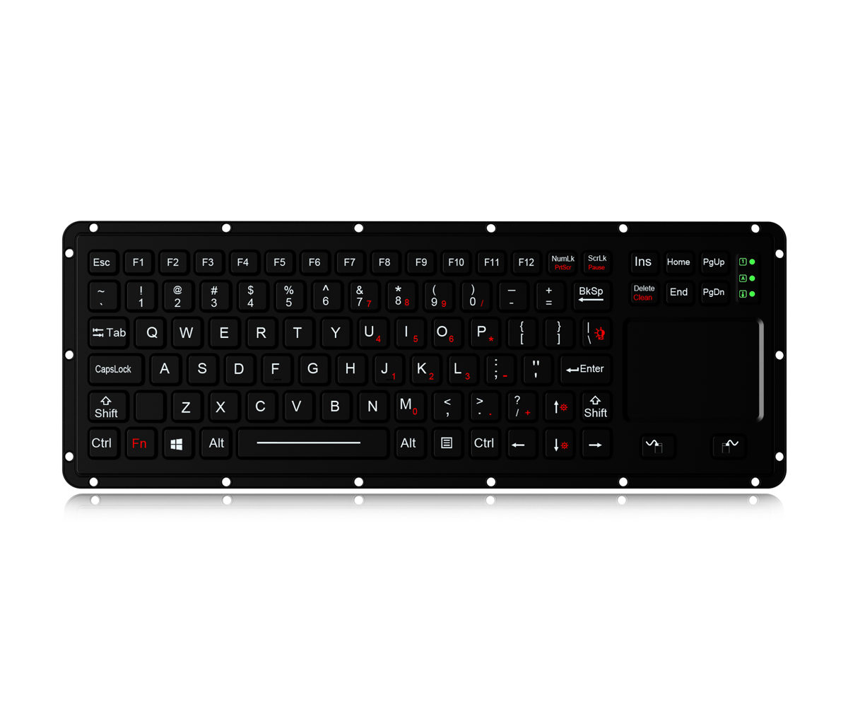 Key Technology K-TEK-M315TP-FN-BL-ML-US/RU-USB — это надежная и герметичная промышленная силиконовая клавиатура с тачпадом, подходящая для эксплуатации в суровых условиях. Степень защиты от влаги и пыли IP65, рабочие температуры от -40 до +75°C. Предназначена для панельного монтажа, данная модификация встраивается снизу.