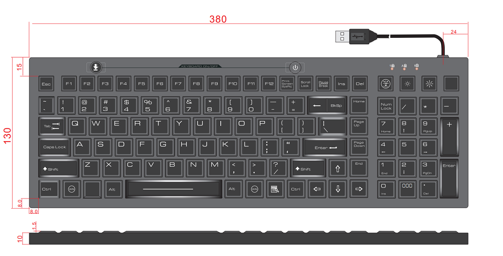 | Ресурс выработки элементов | 5 млн нажатий у каждой клавиши |